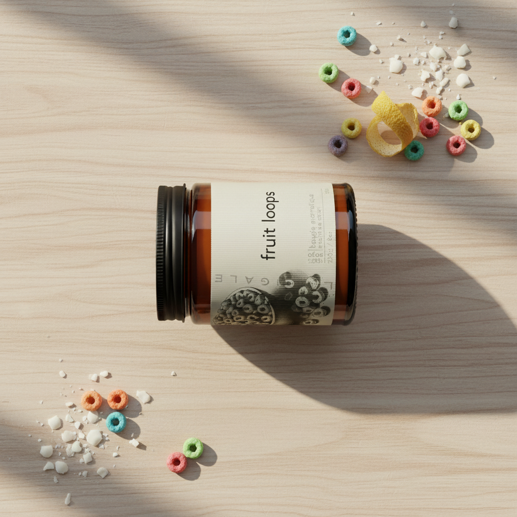 Rediscover the joy of sunny breakfasts from your childhood with our “fruit loops” candle. This playful and gourmet fragrance evokes the pleasure of fruity cereals, creating a sparkling and cheerful atmosphere. Perfect for those looking to bring a touch of cheerfulness and color to their daily life.